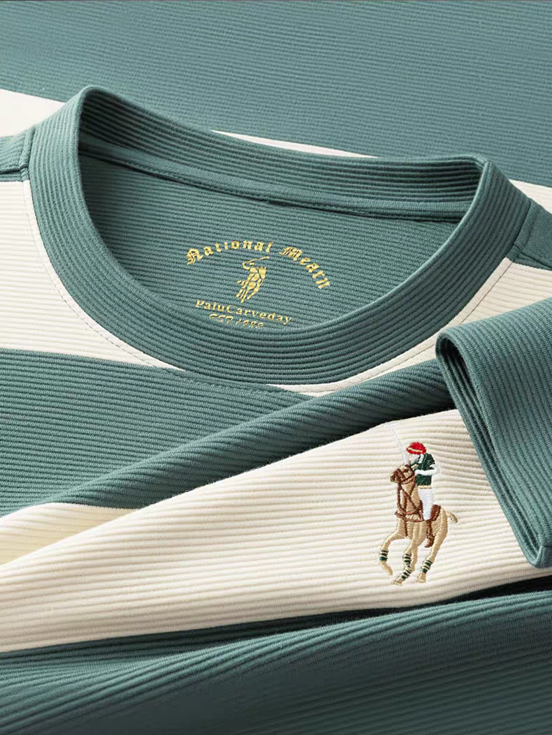 Step into confidence with the Eternal Stride Luxe T-Shirt. Its commanding stripe design and rich texture create a visual rhythm that feels both athletic and aristocratic. Designed for those who move with purpose, it merges timeless luxury with contemporary stride — making it not just a T-shirt, but an emblem of refined style.